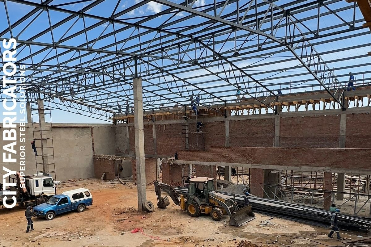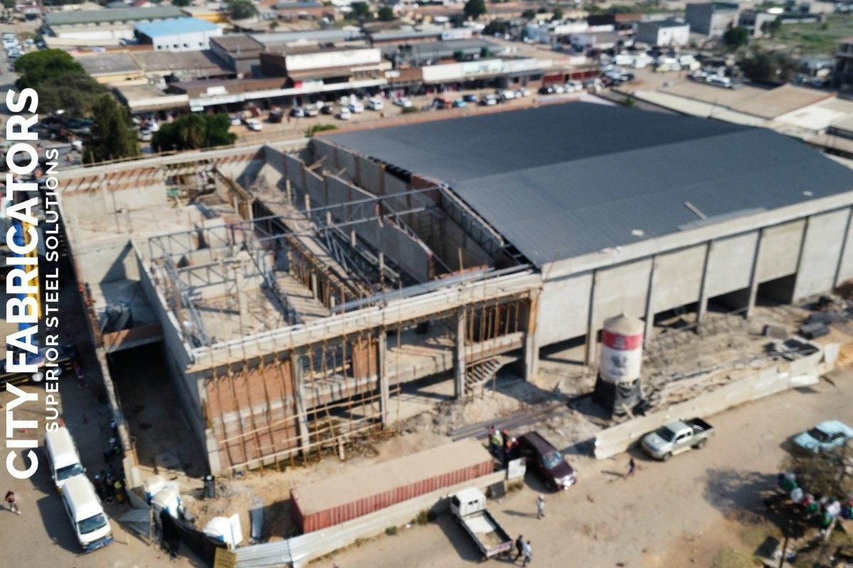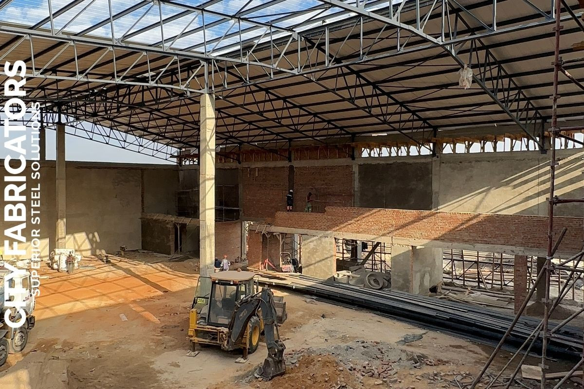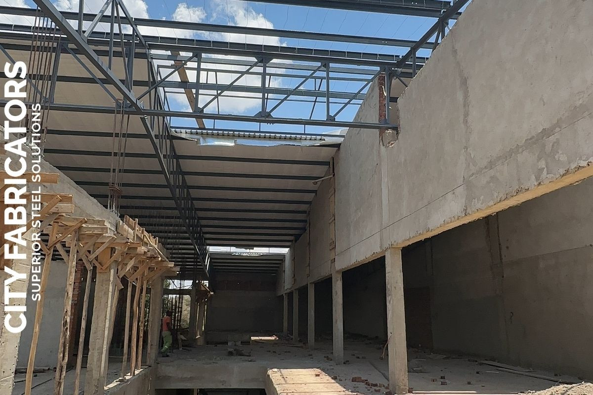 City Fabricators delivered major steel works for a large shopping complex in Chitungwiza for National Social Security Authority, including the structural steel roof, balustrades, canopies, and steel grid covers, executed to support a high traffic commercial environment with durable, modern steel solutions.