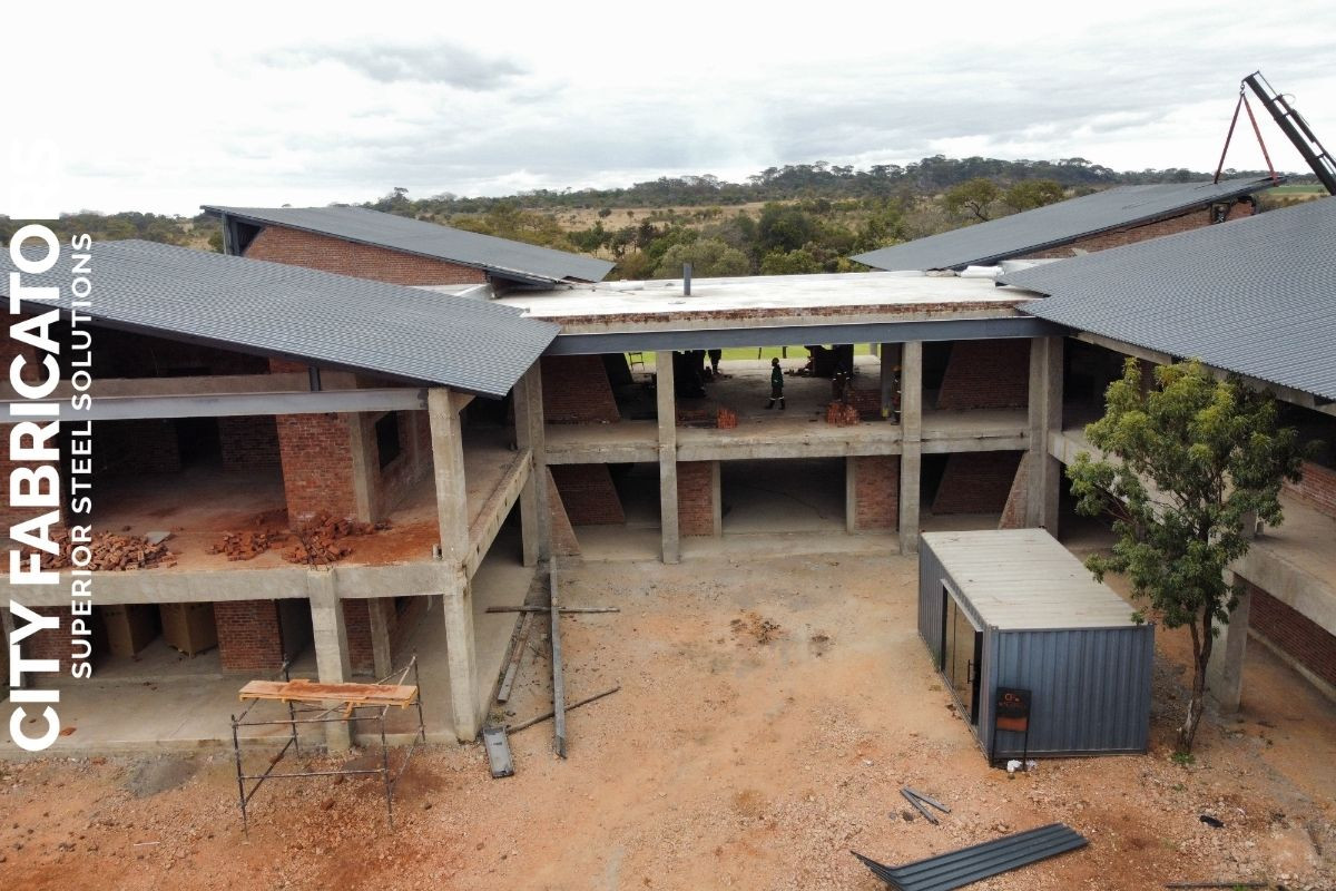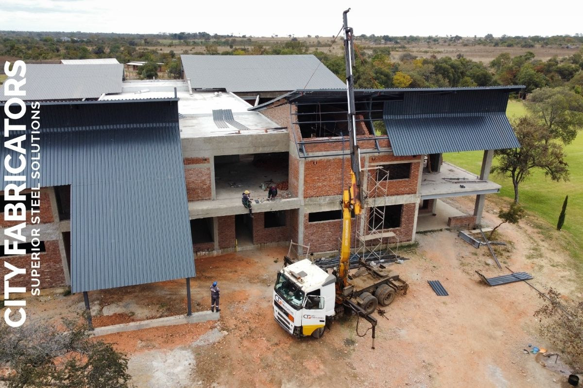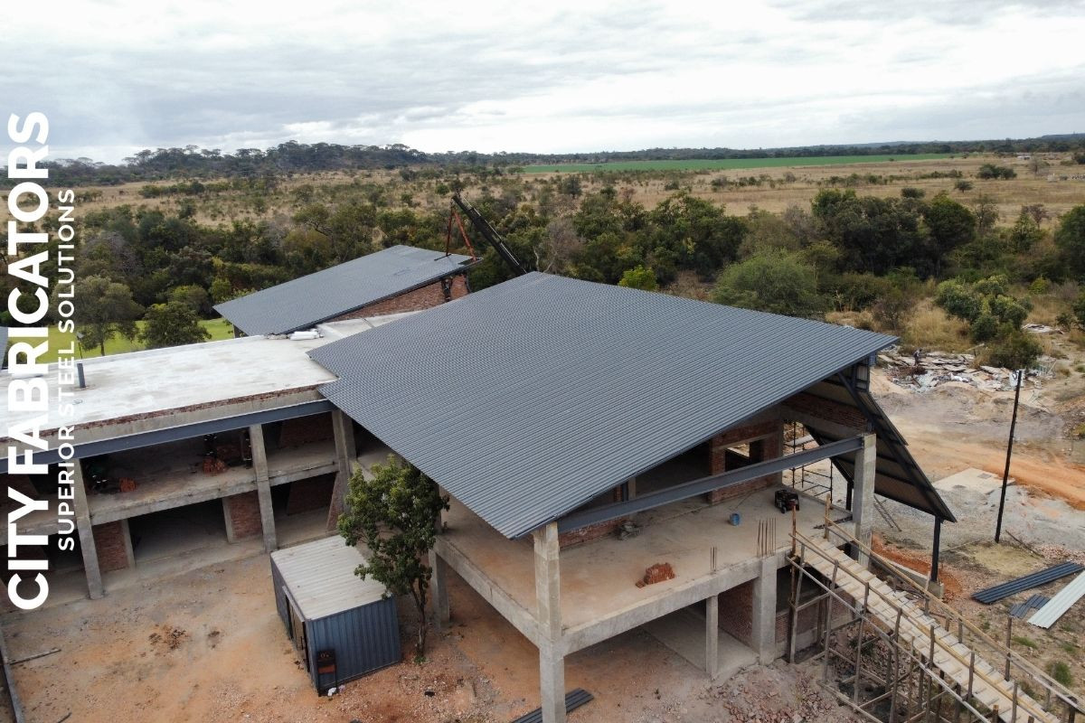 City Fabricators designed fabricated and installed the entire roof structure for a luxury residential mansion in Ngezi, including all associated structural steel works, delivering a high end engineered solution aligned with the project’s premium architectural standards.