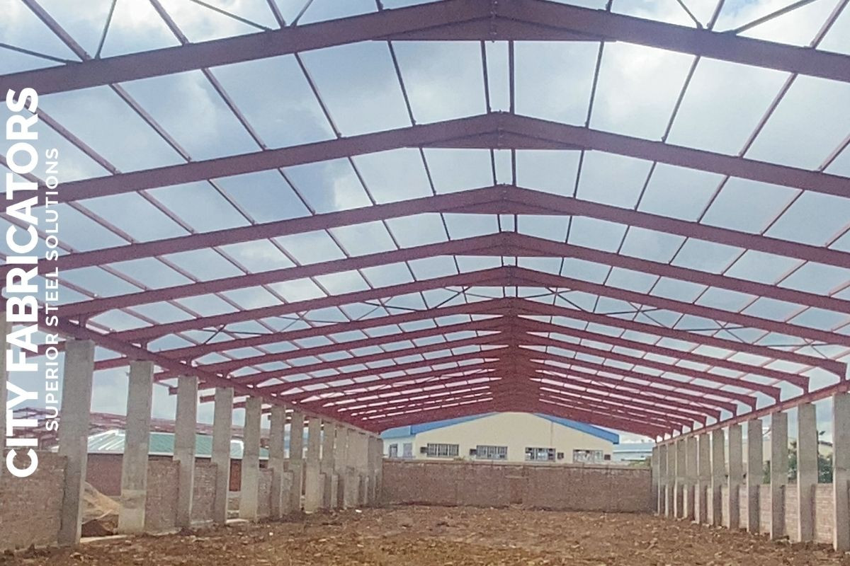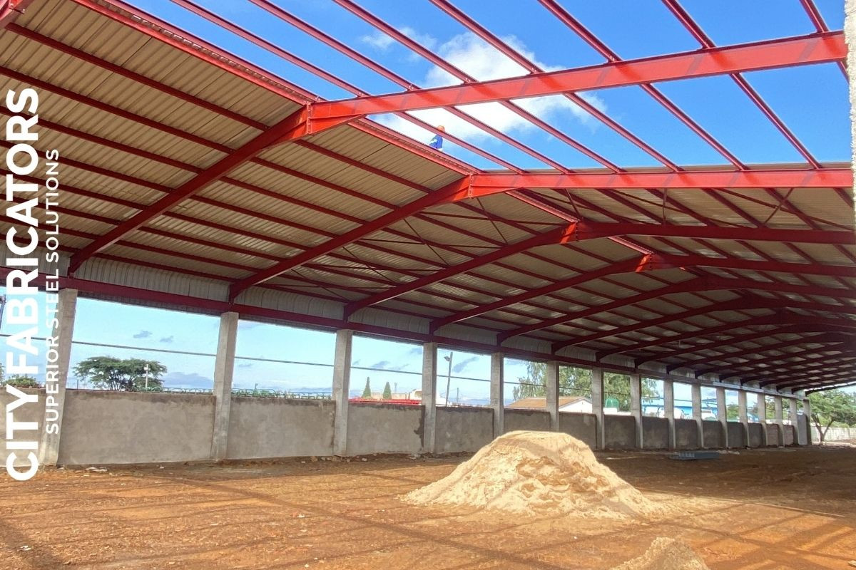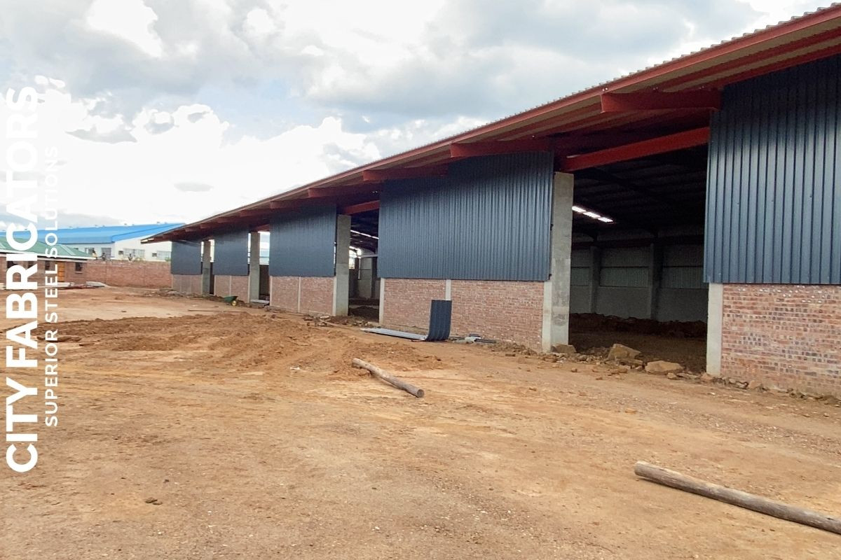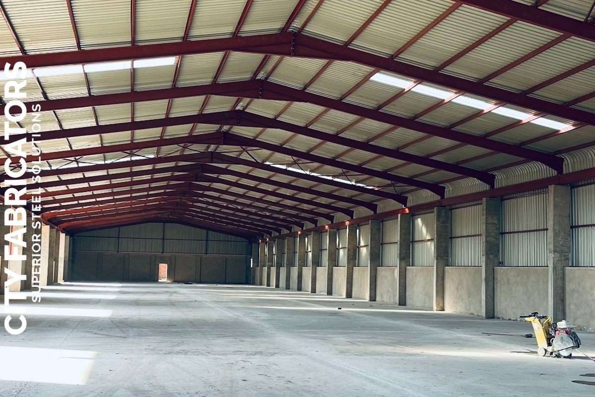 City Fabricators designed fabricated and installed a large scale steel warehouse measuring 30m by 110m for a steel retail operation delivering a robust portal frame structure engineered for heavy duty industrial use long spans and efficient storage operations.
